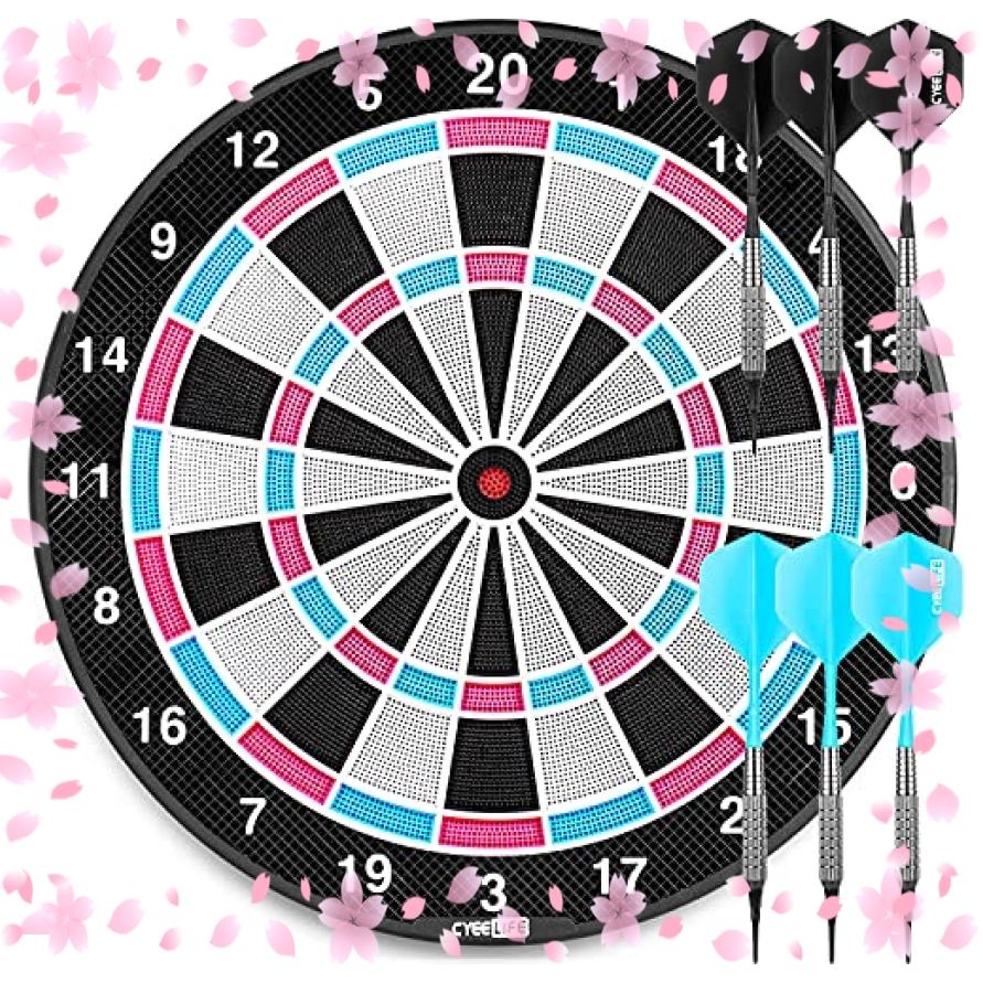 ロール店cyeelife ピンク ソフトダーツボード 18in Dartboard 6本のダーツ 15g 6本無傷フック 30個 ブラックチップ 練習 静音 2色 最大97 オフ